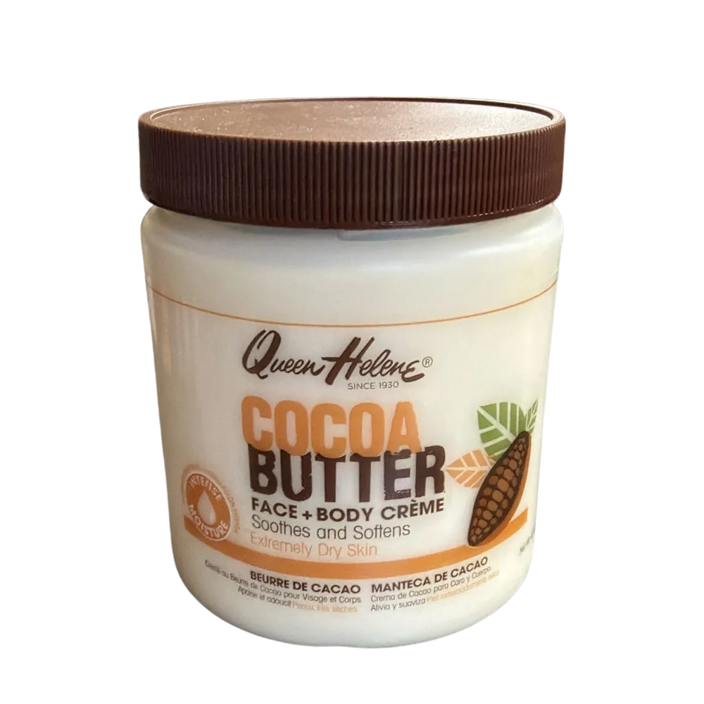 Queen Helene Cocoa Butter Face + Body Creme is a rich and luxurious cream designed for intense moisturizing. Infused with natural cocoa butter
