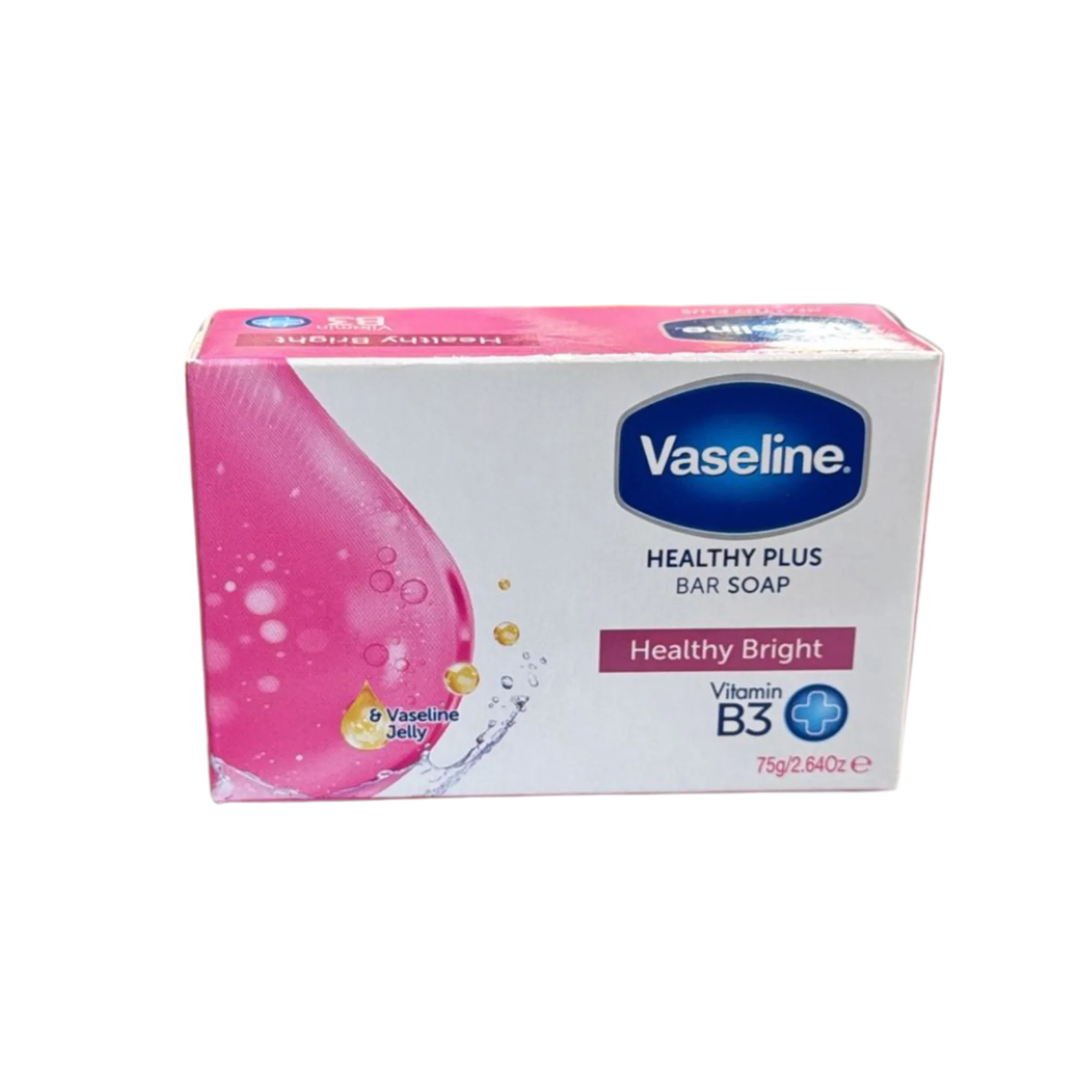 Vaseline Healthy Plus Bar Soap with Vitamin B3 for healthy bright skin.