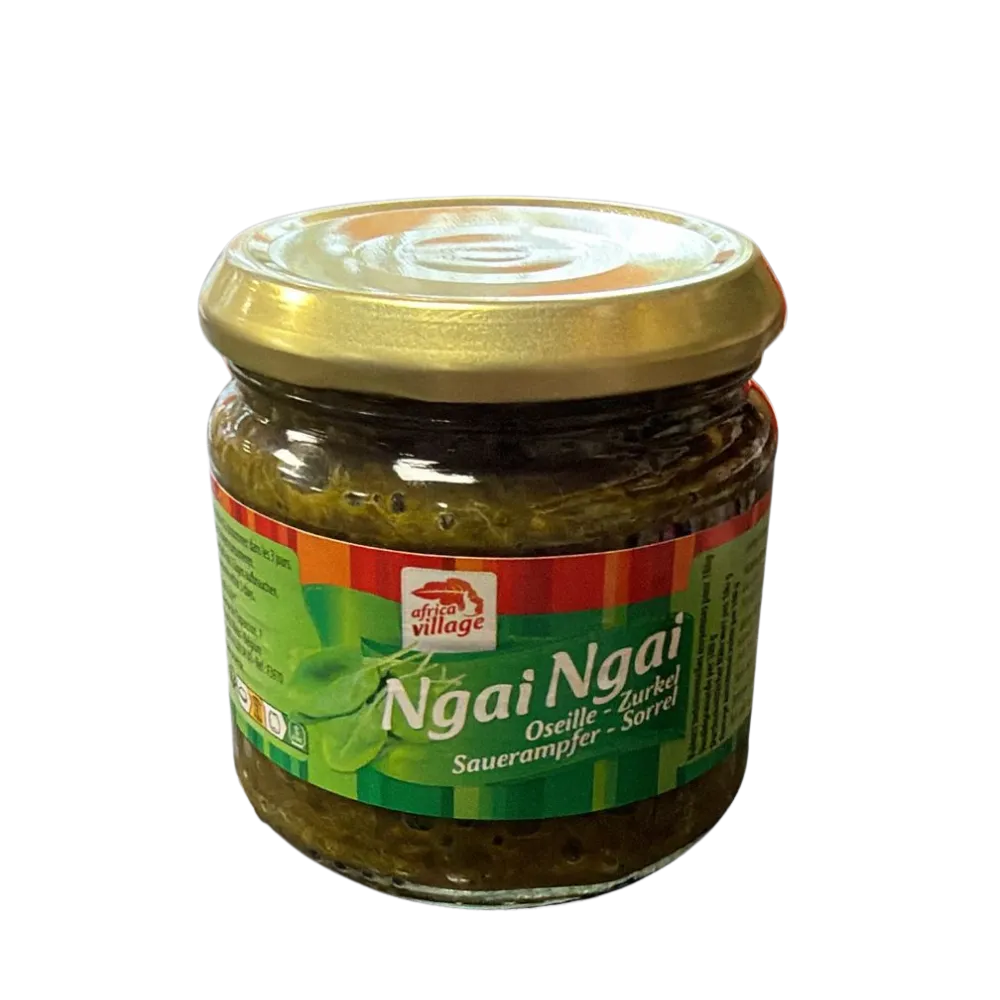 Africa Village Ngai Ngai Paste (also known as Oseille or Sorrel) is a vibrant, slightly tart green sauce essential for many African stews. This 180g jar provides a convenient way to add the fresh, authentic flavor of sorrel to your traditional recipes.