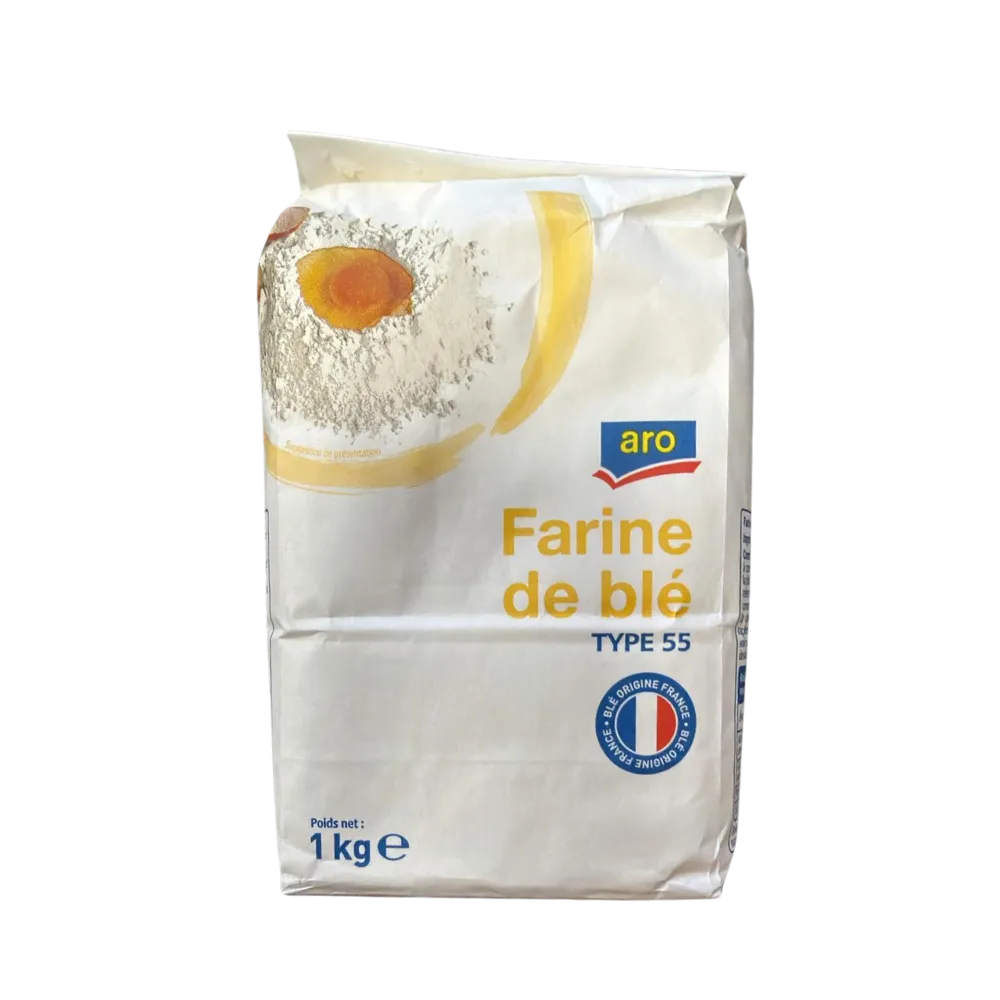 High-quality French T55 wheat flour, perfect for baking bread, pastries, and general cooking.