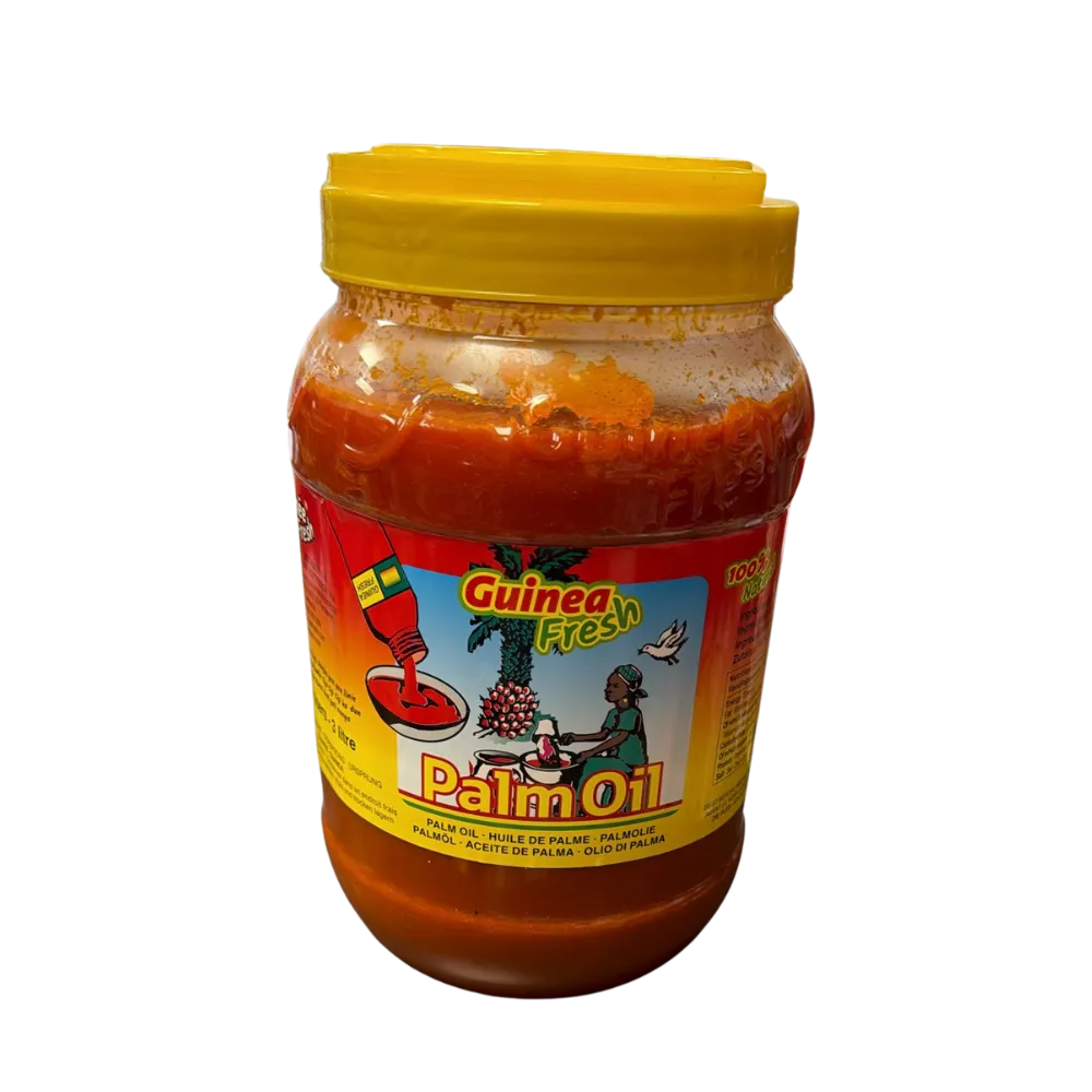 Get the richly colored and flavored **Authentic Red Palm Oil** from **Guinea Fresh**. A staple in West and Central **African cooking**, this 3-litre jar is perfect for preparing traditional **ethnic food**. Its vibrant color and distinct flavor enhance stews and sauces like Jollof Rice. 100% natural.