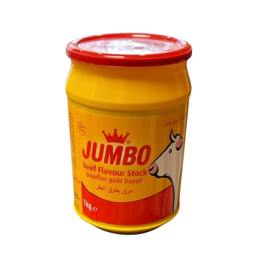 Achieve rich, savory beef flavor with Jumbo Halal Beef Flavour Stock. This 1kg tub of granulated bouillon is perfect for stews, gravies, and rice dishes, delivering a consistent and deep beef taste. Sourced from France and certified Halal for premium quality.