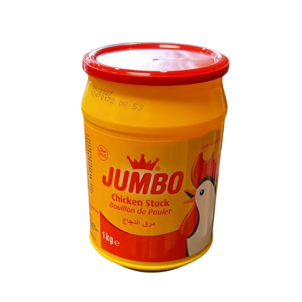 A kitchen essential, Jumbo Halal Chicken Stock Bouillon (1kg) adds deep, savory chicken flavor to any dish. Ideal for soups, rice, stews, and sauces. This premium, granulated stock is sourced from France and is guaranteed Halal certified.