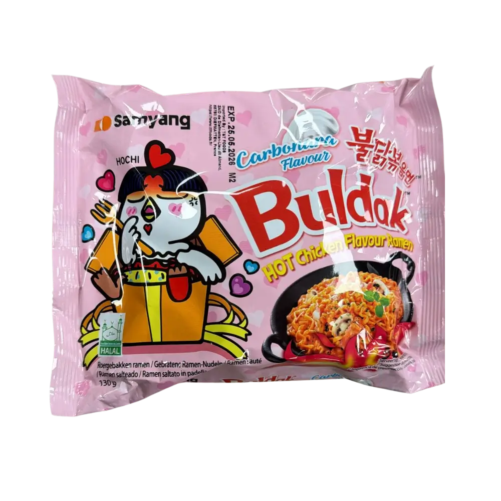 Experience a culinary twist with Buldak Carbonara Hot Chicken Flavor Ramen. This innovative flavor combines the signature Buldak spiciness with the creamy, rich notes of a classic carbonara sauce. The result is a surprisingly balanced and incredibly satisfying meal that’s both comforting and exciting. Perfect for those who love their heat with a luxurious, velvety texture.
