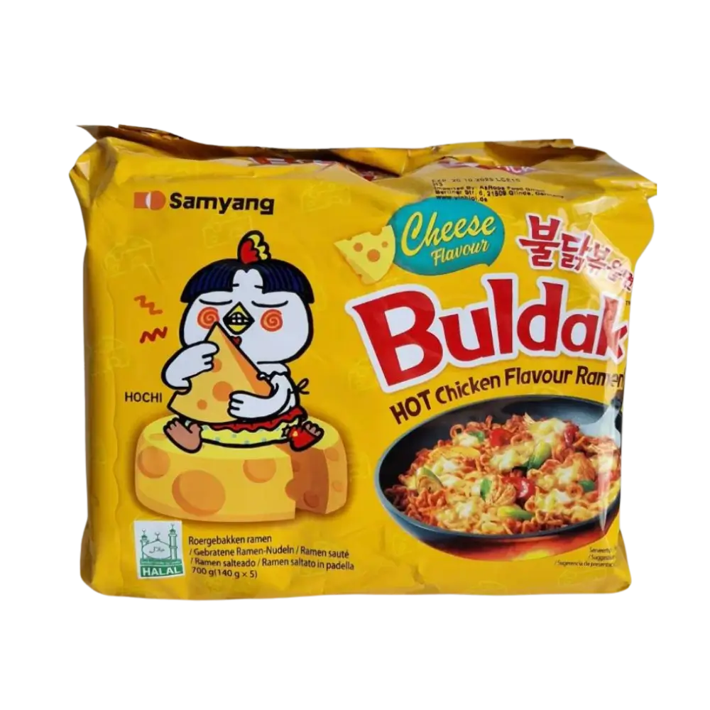 Stock up on your favorite cheesy-spicy delight with this 5-pack of Buldak Cheese Hot Chicken Flavor Ramen. This popular variant brings together the beloved Buldak heat with a rich, savory cheese flavor, creating a wonderfully balanced and addictive taste experience. It’s the ideal choice for those who enjoy a flavorful kick tempered with creamy goodness.