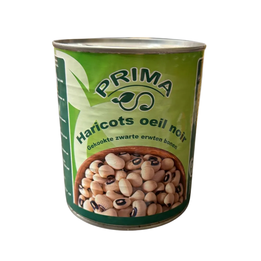 Convenient pre-cooked black eyed peas (Haricots oeil noir) for traditional recipes.