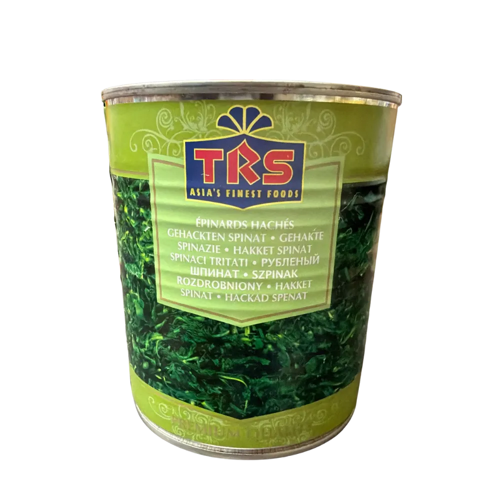 Freshly harvested spinach, finely chopped and canned to preserve nutrients and flavor.