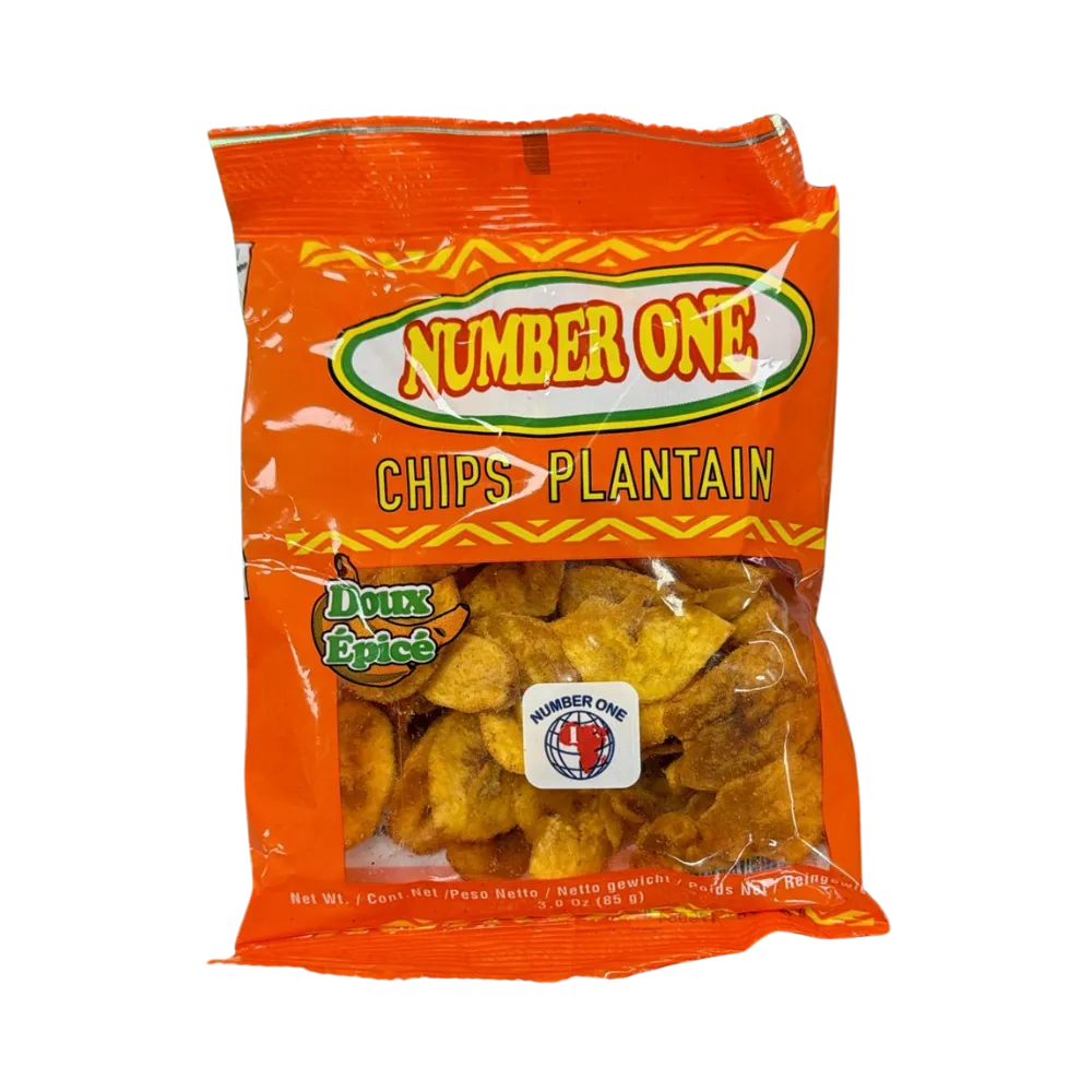 Savor the authentic taste of plantain chips with a delightful sweet and spicy kick. Number One Chips Plantain are a perfect snack for those who enjoy a unique flavor profile. Net Wt. 3.0 Oz (85g).