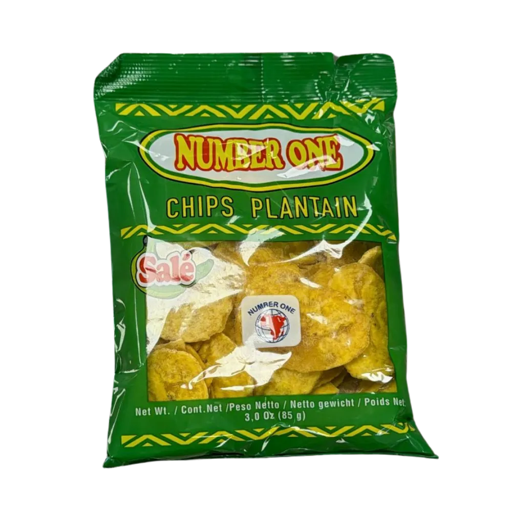 Enjoy the simple and savory taste of Number One Chips Plantain, perfectly salted for a satisfying crunch. A great alternative to potato chips. Net Wt. 3.0 Oz (85g).